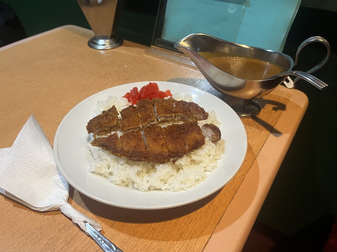 こちらがヤフソチキンタコスとチキンと自家製ココナッツカレーです。ライムを絞っていただきます。ブルーコーンという黒っぽい青色をしたとうもろこしの粉を使って、1枚1枚お店で焼いたタコス生地は、通常のとうもろこしで作った生地よりももっちりとしているのが特徴です。